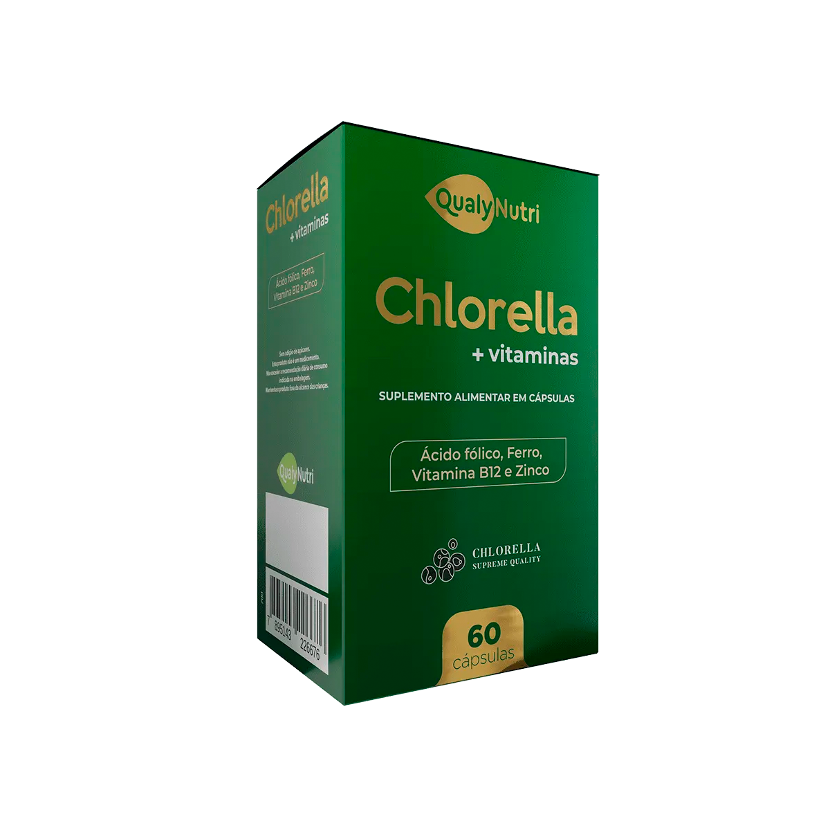 Chlorella + Vitaminas com 60 cápsulas. Enriquecida com Ácido Fólico, Ferro, Vitamina B12 e Zinco.