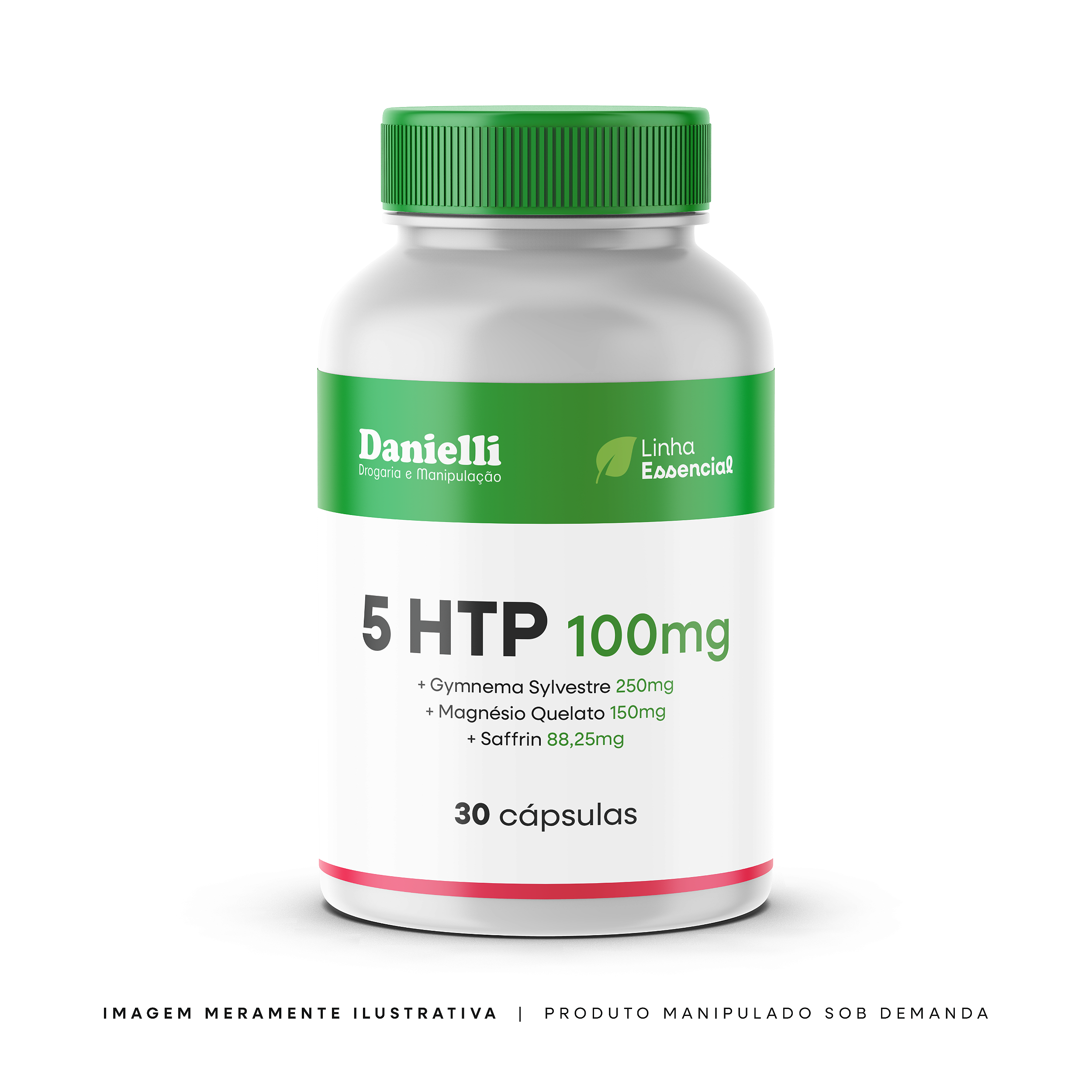 Preparação magistral em cápsulas contendo 5-HTP, Gymnema sylvestre, Saffrin® e Magnésio Quelato, destinada ao uso sob orientação de profissional habilitado.