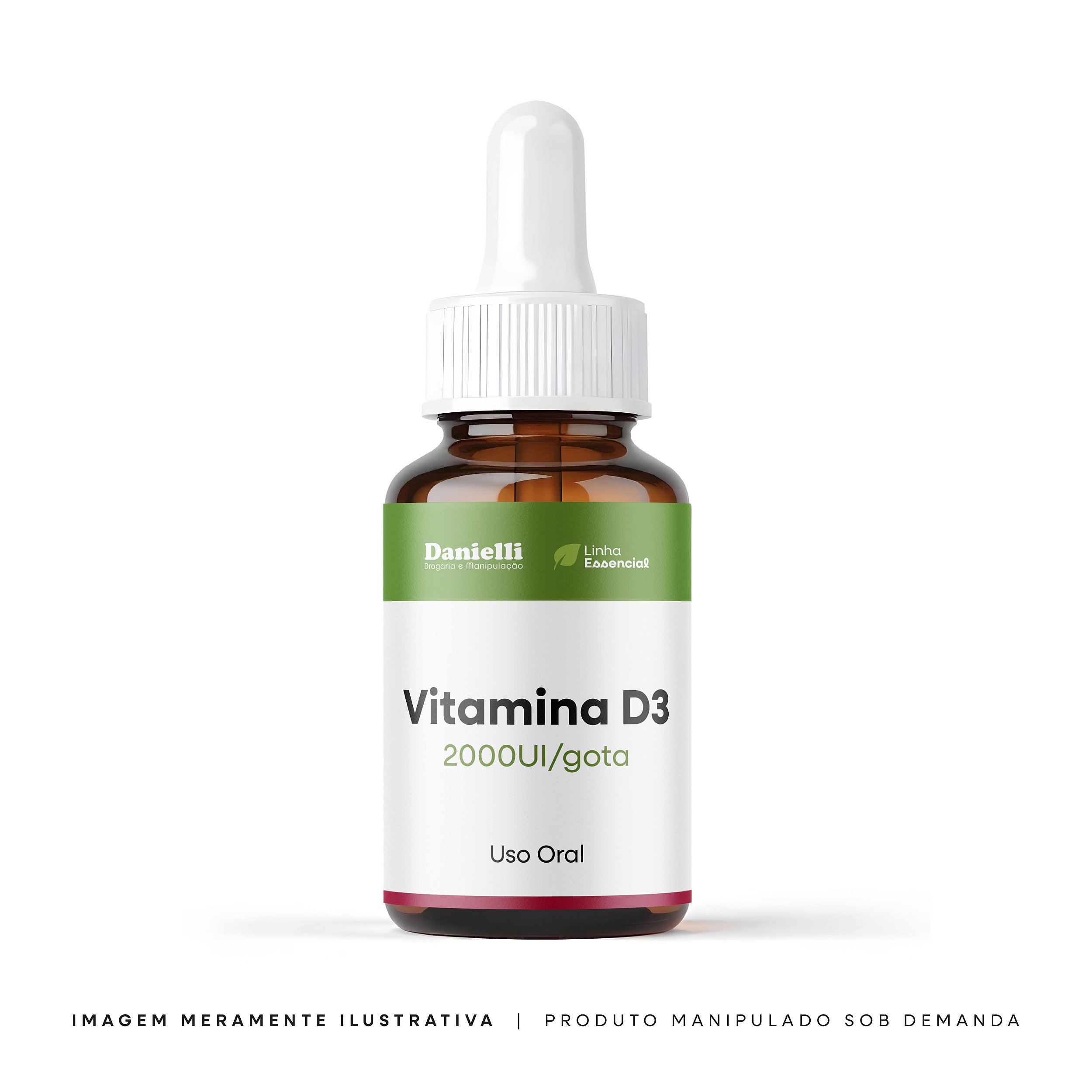 Preparação magistral contendo Vitamina D3 na concentração de 2000 UI por gota, nutriente essencial relacionado ao metabolismo do cálcio, fósforo e ao adequado funcionamento do organismo, destinada ao uso sob orientação de profissional habilitado.